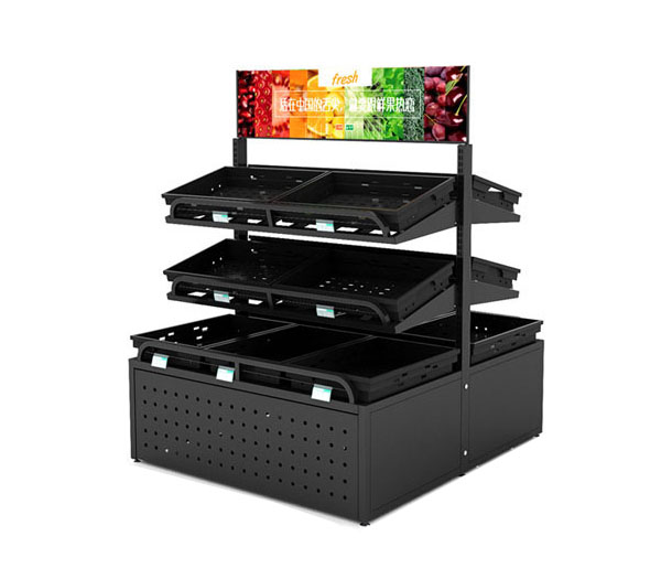 产品编号:Q-104 产品颜色:黑色、绿色、木纹 使用场地:单个使用适合各类商场蔬果货架市场,精致组合展示,建议使用在一些大型的超市或者蔬果专卖店里面更加合适 产品描述:双面蔬果货架,跟上时代变化的步伐,优质组合展示,科学陈列样式,专制顶箱,精美展示效果,低陈列,高展示,上下展示效果最佳;适合各类商场蔬果货架市场,精致组合展示,建议使用在一些大型的超市或者蔬果专卖店里面更加合适。