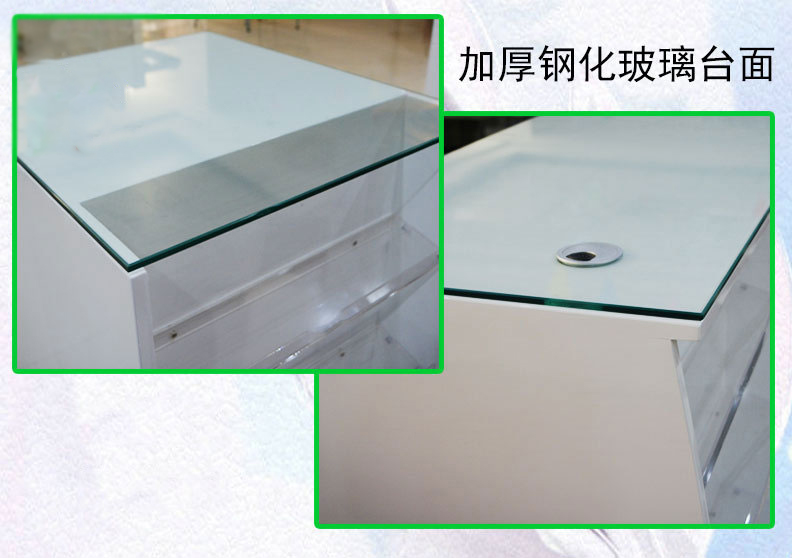 产品编号:Q-206 产品颜色:白色 使用场地:广泛用于超市、便利店、药房、文体店、母婴店、精品店、仓库等场所。 产品描述:Q-206款玻璃收银台以白色为主,台面为玻璃或者大理石台面,底端为不锈钢包边,结合烤漆的工艺和全木的材质,该款收银台造型美观 ,清新亮丽,质量上层。.改观商场超市的形象,提升购物场所的级别。提升商品的流通率,加快顾客的结账时间,避免顾客因耽搁时间长而放弃购物。