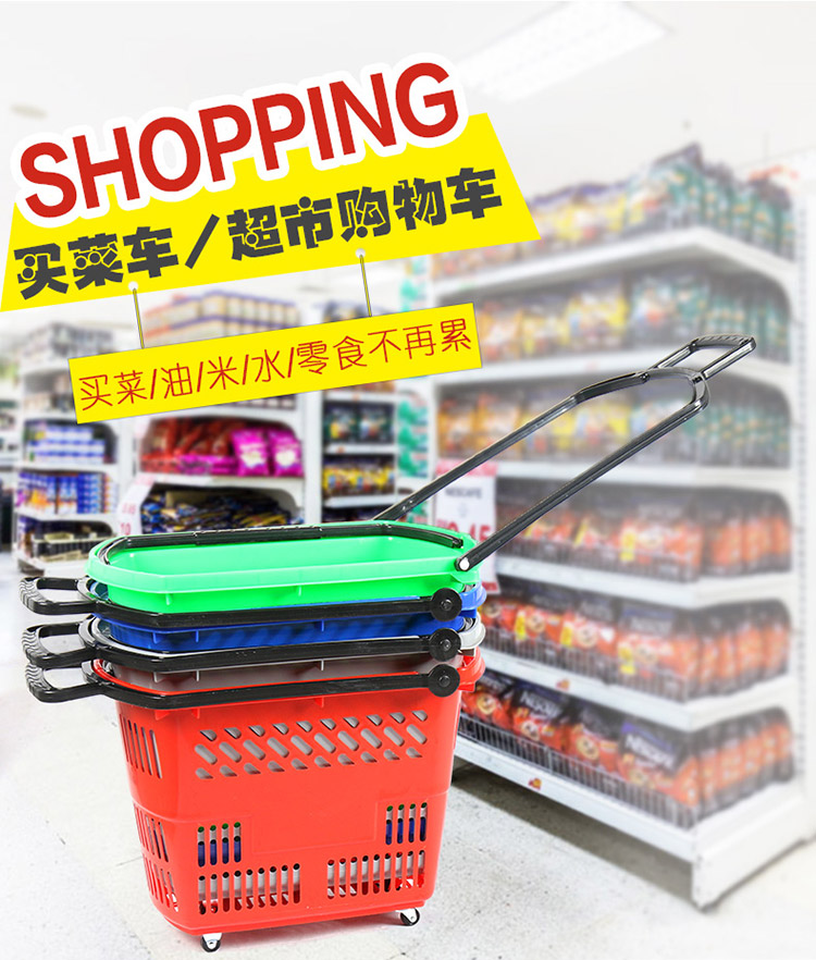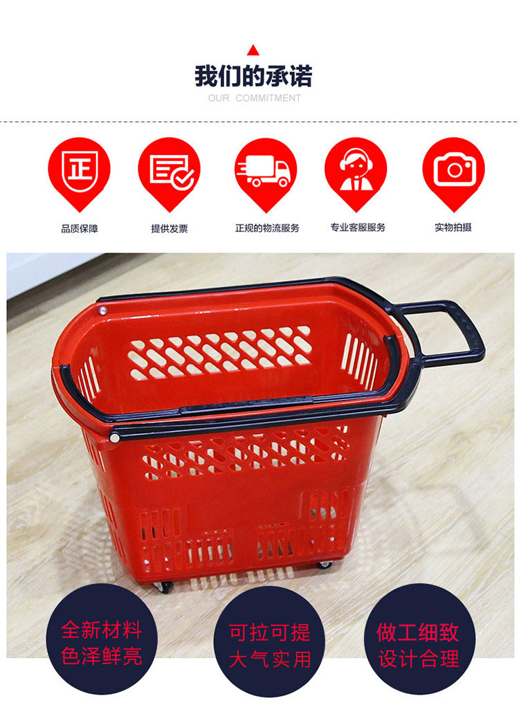 产品描述:q-404款手拖篮主要以红色为主,四轮拖篮寿命长且可以循环使用,承重大,移动方便,便于购物。广泛用于超市、便利店、药房、文体店、母婴店、精品店、仓库等场所。